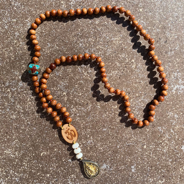 Hand-Knotted with multiple strands of vegan threads using exotic 6mm, 8mm or 10mm Brunette Boxwood beads, carved exclusively for Jen Stock