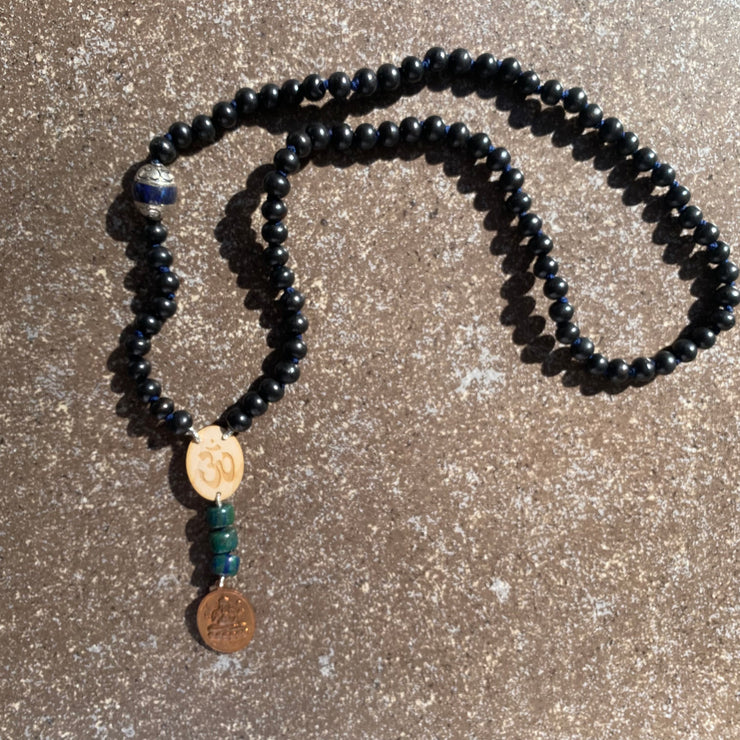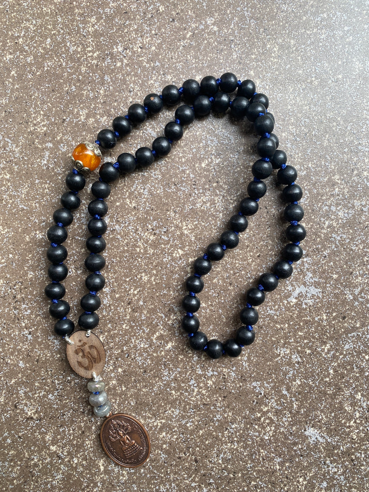 Hand-Knotted with multiple strands of vegan threads using exotic 6mm, 8mm or 10mm Brunette Boxwood beads, carved exclusively for Jen Stock