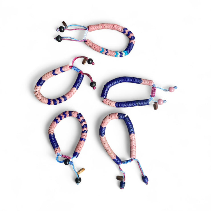 6.5” adjustable 8mm chevron Heritage African Trade Beads for Everyone. Each is one of a kind, like us all! Slider closures and pink & blue tie dye threads. Pick from image of 5, those are the ones still available.