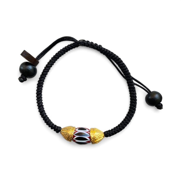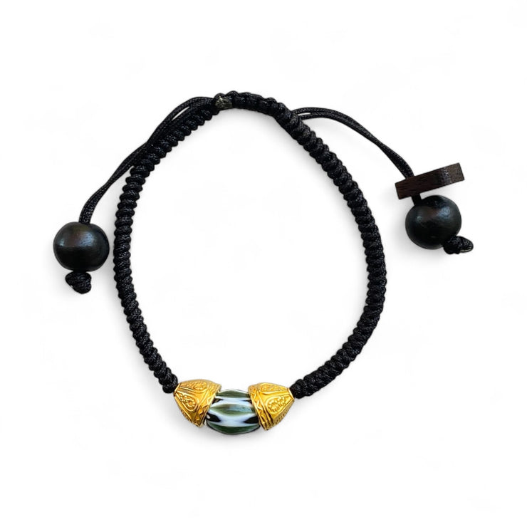 3 versions: 24kt vermeil beads /caps, African trade beads or Agate beads. 6mm Brunette Boxwood at the ends