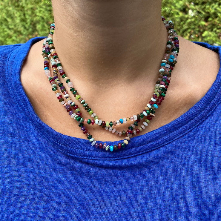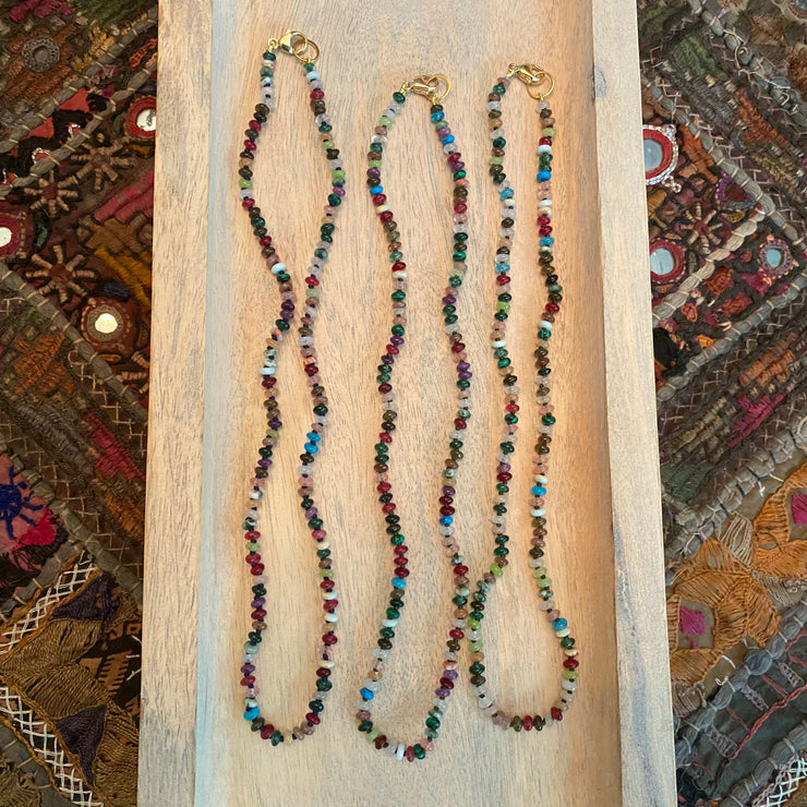 Our current  "Get Stoned" Collection pieces are perfect for layering, or a simple one to wear with a patterned shirt or concert-T! The mixed gems colors and powerful combined energies is true Jen Stock Spiritual Armor/Master Healer!